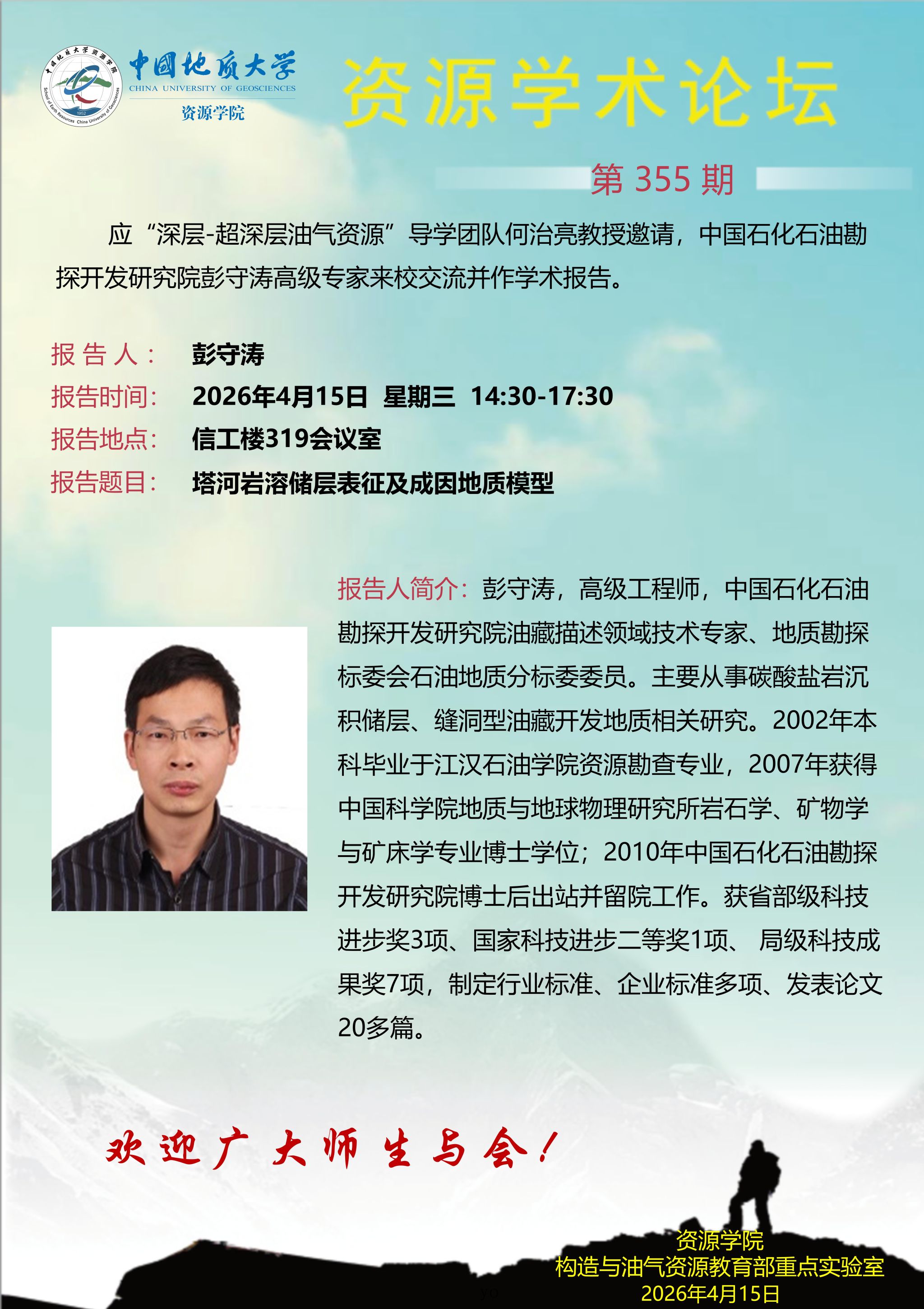 【4月15日】第355期资源学术论坛:彭守涛学术报告