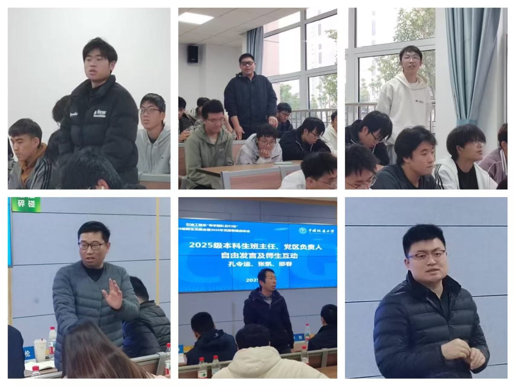 党委副书记谭文伦,党建辅导员彭鑫,石油工程系党支部书记张恒、主任李恒,副主任骆杨、杨宝林、孟庆帮,科研教学团队教师(导学团队)、2022级本科生石骏鹏、2025级驻班党员和2025级石油工程系本科生参加活动。会议由石油工程专业本科生党支部书记韩贻皓主持。