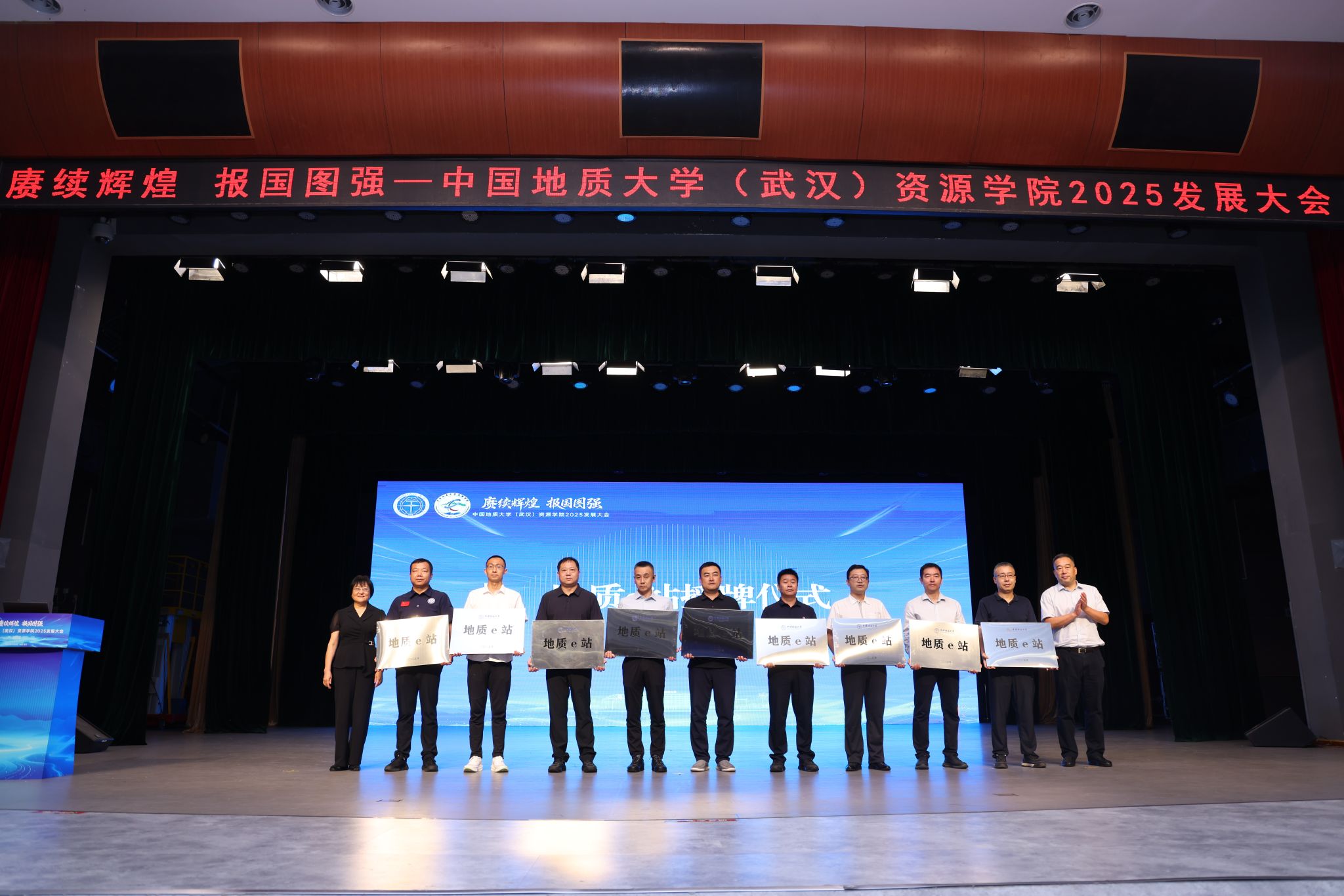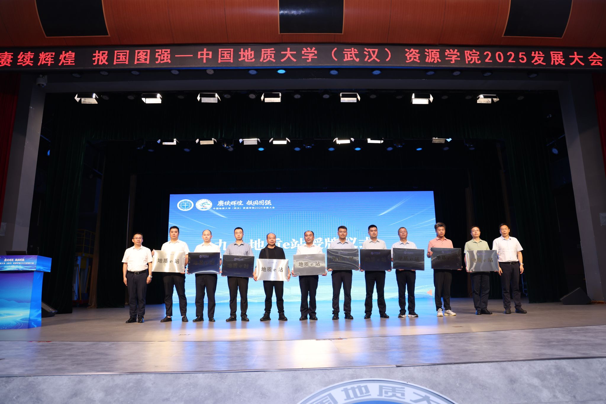 院长朱红涛分别为安徽省煤田地质局第三勘探队、楚雄州吕合煤业有限责任公司、河南省资源环境调查一院有限公司、核工业二0八大队、湖北省地质局第一地质大队、湖北省地质局第七地质大队、湖北煤炭地质局、湖北煤炭地质一二五队、湖北省地质调查院、晋城市能源发展中心、内蒙古煤勘新能源有限公司、宁夏回族自治区核地质调查院、宁夏回族自治区煤炭地质局、山西蓝焰煤层气工程研究有限责任公司、山西省煤炭地质一四四勘查院有限公司、新疆维吾尔自治区地质局阿克苏地质大队、中南冶金地质总局中南地质调查院、中陕核工业集团有限公司、中石化地球物理公司科技研发中心、中石化江汉油田勘探开发研究院等20家行业单位授牌“地质e站”。学院将携手自然资源行业头部单位大力推动地质e站建设,打造教育科技人才一体化育人共同体,探索具有地大特色的实践育人新范式。