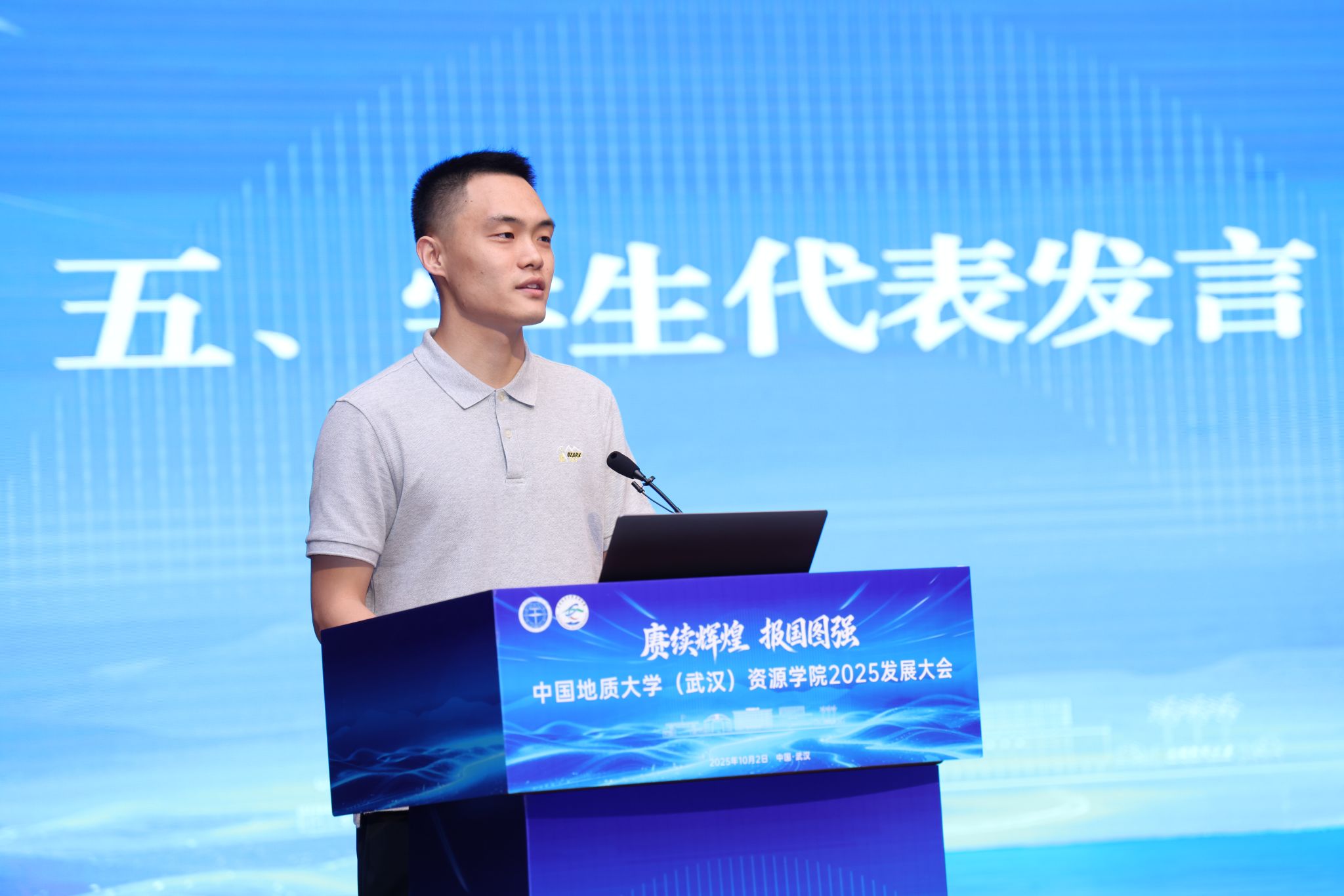 2024级博士研究生代表张启扬发言。他结合自身科研实践经历分析了成长体悟,他立志用专业知识服务能源资源安全保障,展现资源人的担当与使命,让青春之花在祖国最需要的地方绽放光彩。