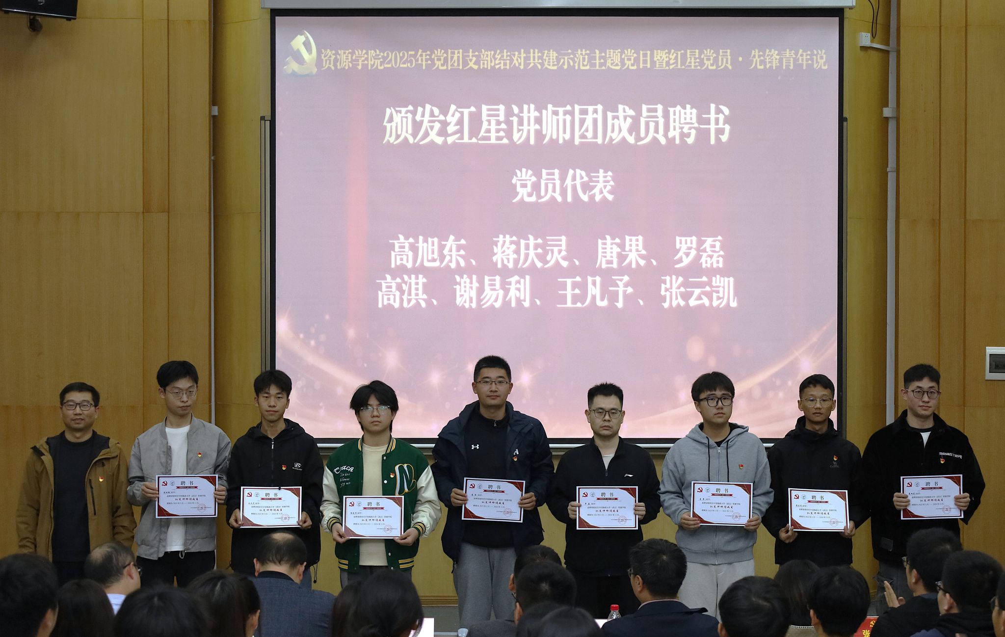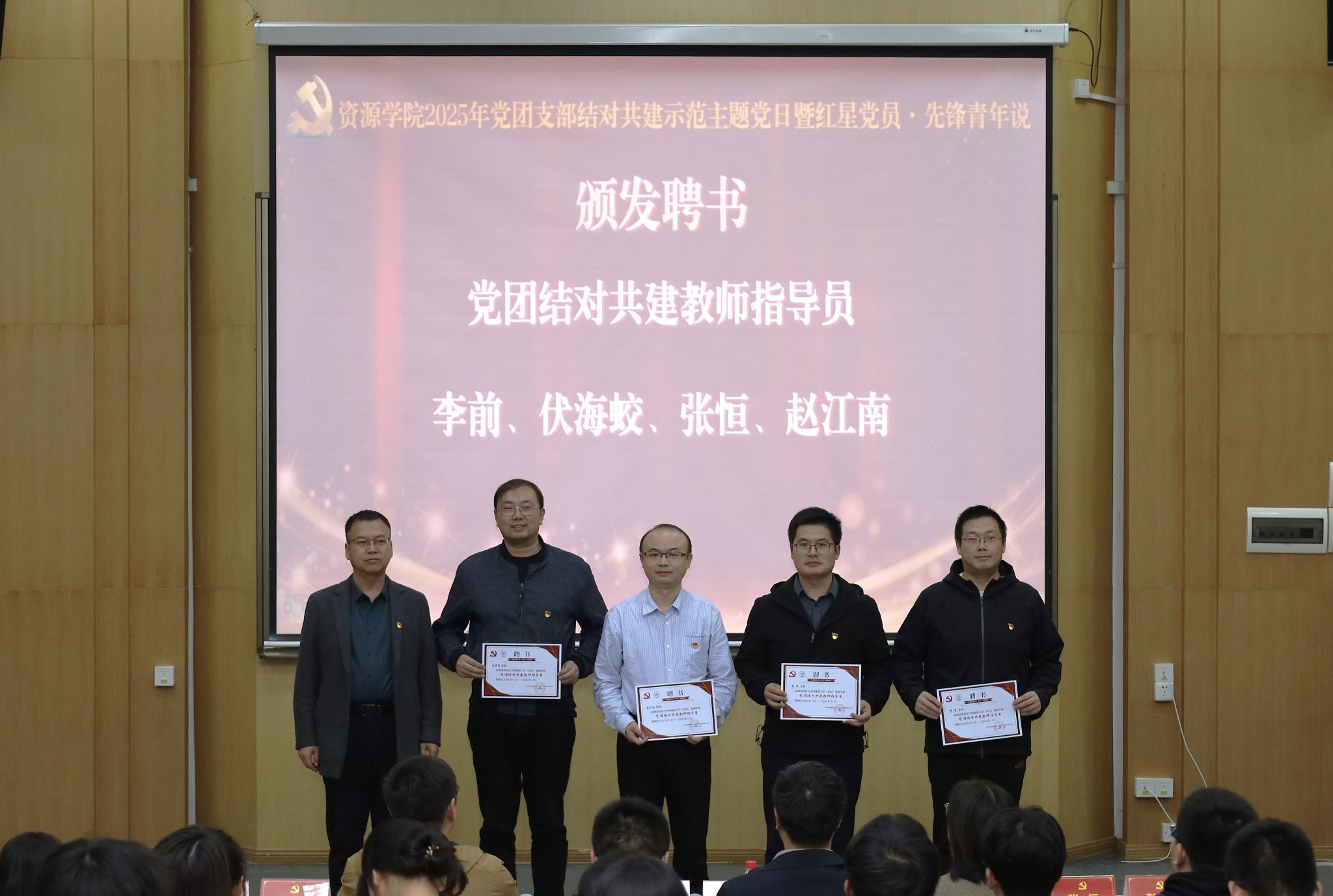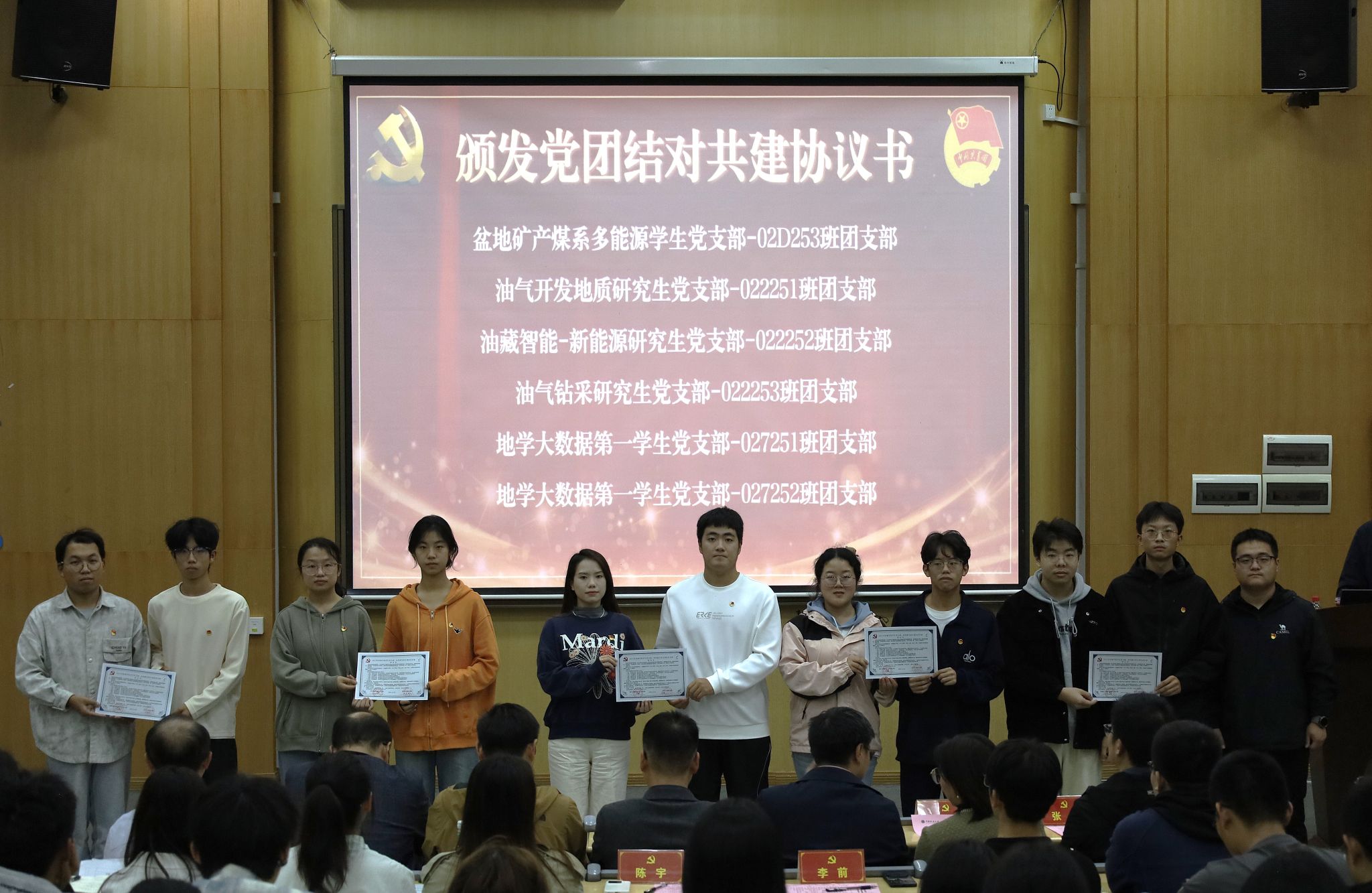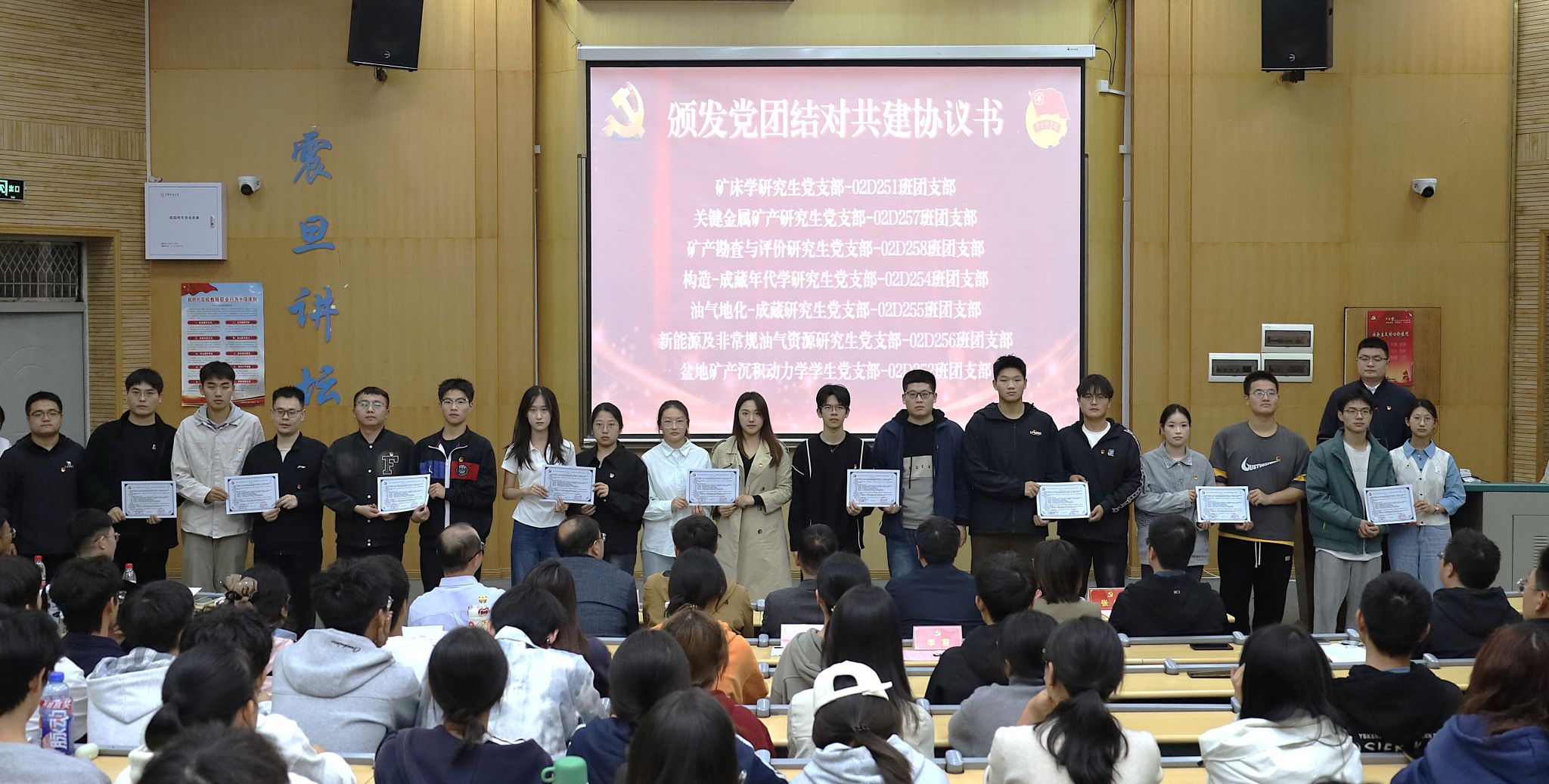 研究生工作部部长许德华作指导讲话。他首先对学院党团结对共建工作给予了充分肯定,指出此项工作是深化基层组织建设、推动党团协同发展、夯实人才培养根基的重要举措。随后,许部长对在座的同学们提出了三点殷切期望:一是要坚定理想信念,筑牢思想根基。希望同学们通过党课、团课和结对共建活动,不断提高政治觉悟,深刻认识到个人前途与国家命运的紧密相连,将资源报国作为青春奋斗的鲜明底色。二是要投身实践锻炼,做到学以致用。鼓励大家珍惜共建平台,主动在科研训练、学科竞赛和社会实践中摸爬滚打,将专业知识转化为解决实际问题的真本领,努力成长为知行合一的拔尖创新人才。三是要严守规矩纪律,涵养优良品格。 要求全体同学牢固树立规则意识,在日常学习、科研和生活中,坚决守住学术诚信和法律法规的底线。
