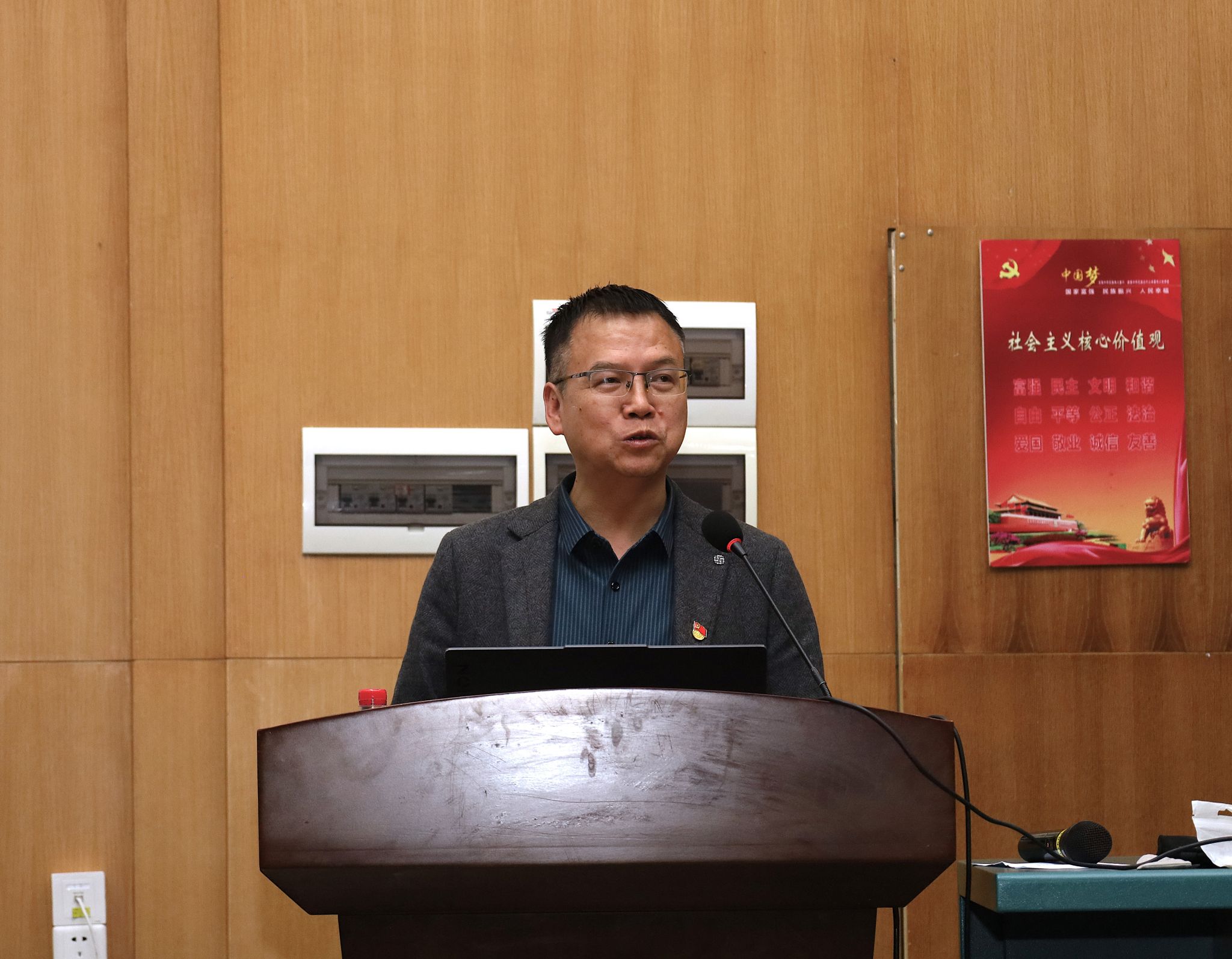 学院党委书记汪再奇为与会党员讲党课