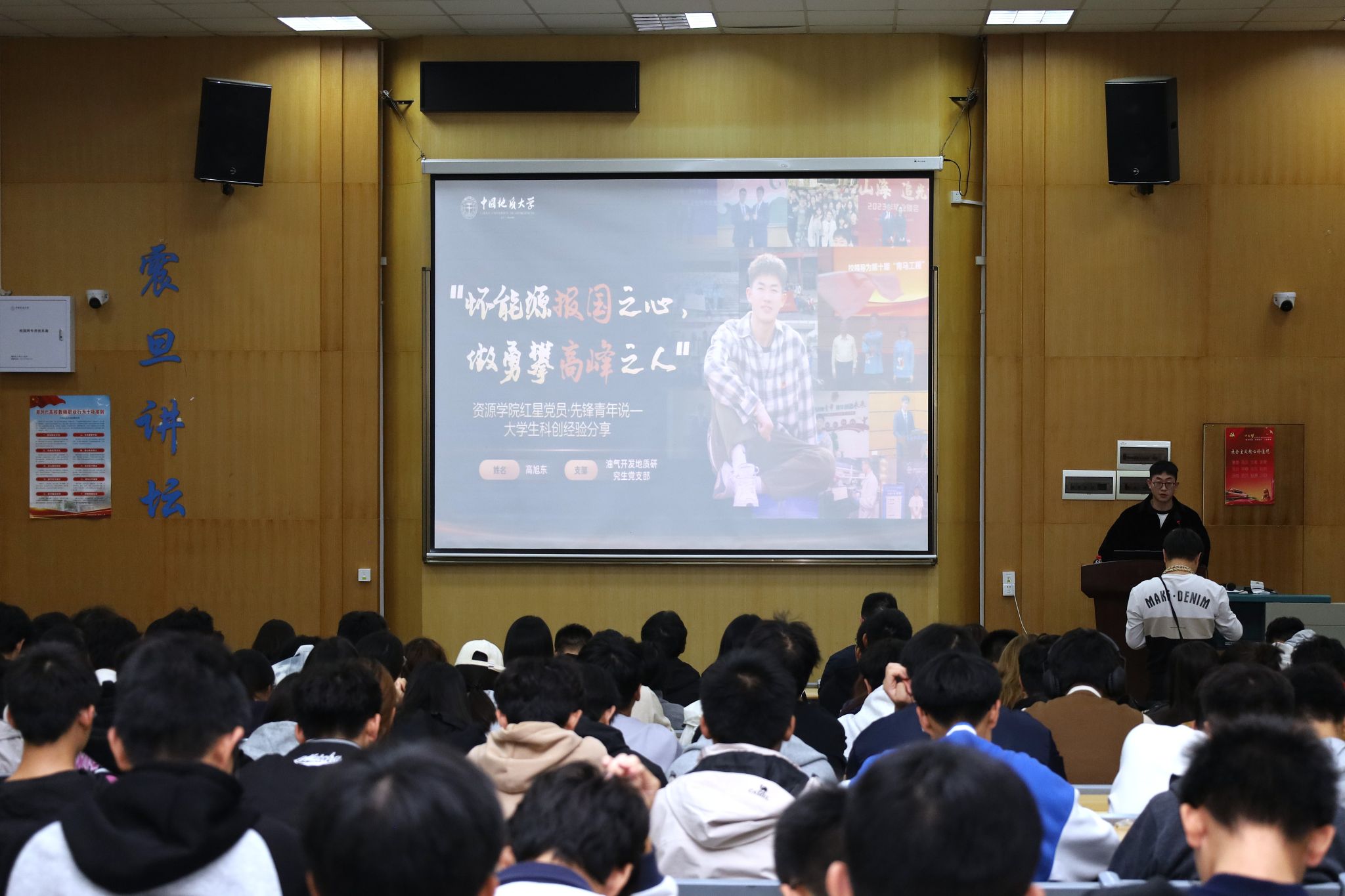 第一阶段伊始,学院党委书记汪再奇领誓入党誓词并以《青春向党 地质报国》为主题,为与会全体师生讲授了一场生动的党课